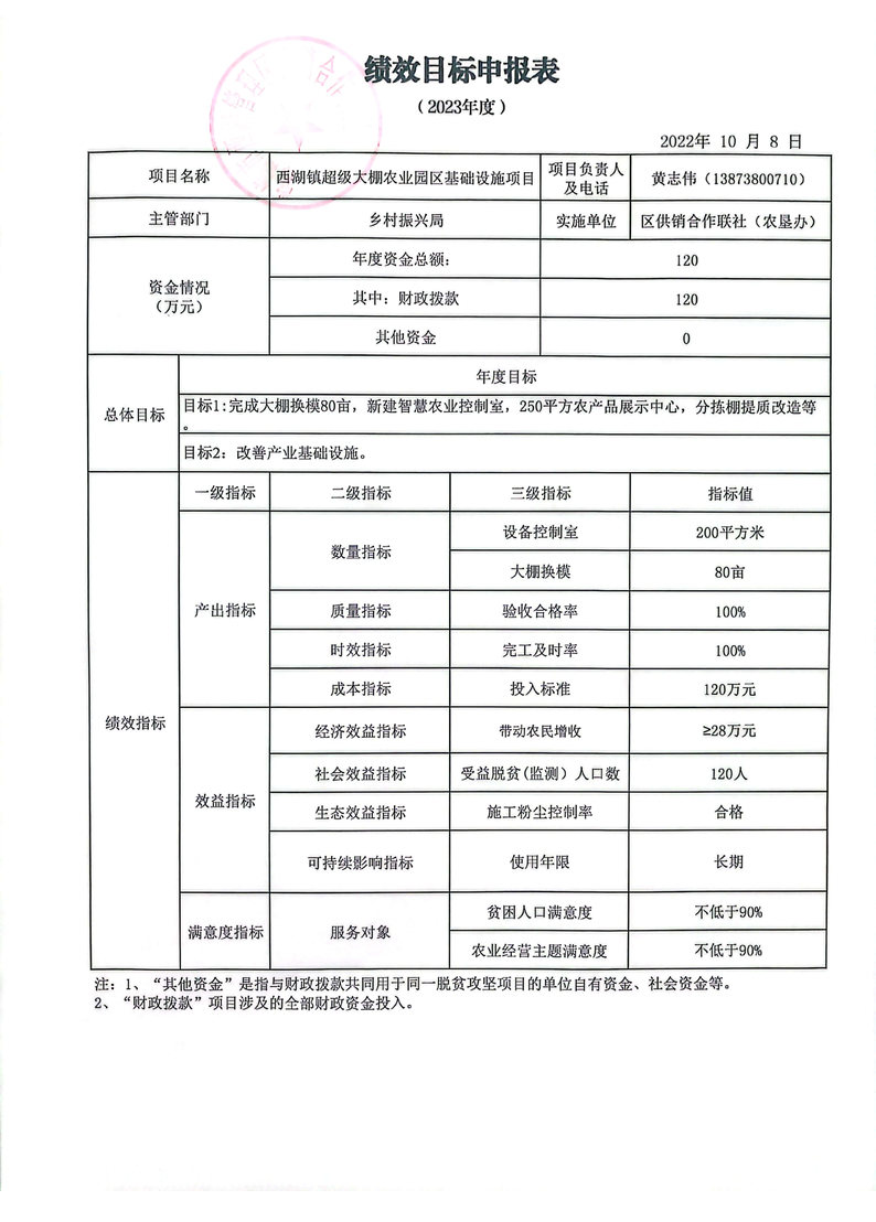 西湖管理区西湖镇超级大棚农业园区基础设施项目绩效目标申报表的公示