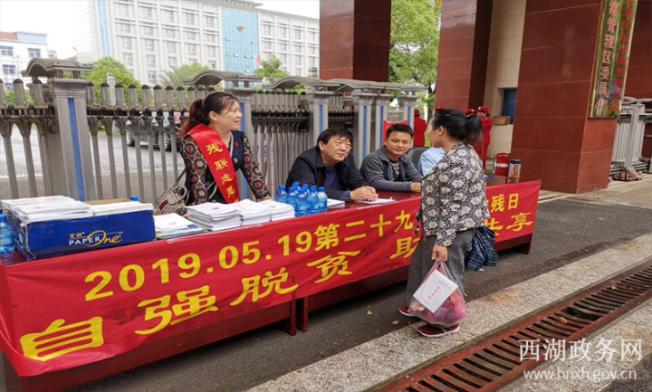 当天上午,西湖残联组织区、乡镇残联工作人员及相关志愿者近30余人,冒雨在区委机关、乡镇等地进行残疾人相关政策的宣传。汉寿眼科医院的医护人员现场为百余名白内障患者免费进行了检查,解答了相关疑问。在残疾人工作者、助残志愿者的宣导和帮助下,广大群众纷纷走近残疾人群体,营造全社会扶残助残的良好氛围,号召社会各界进一步尊重、理解、关心和帮助残疾人,切实推动全区残疾人事业加快向前发展。