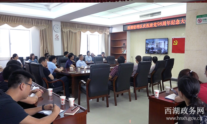 7月1日,西湖管理区以实时直播的方式,通过智慧党建视频会议系统在全区召开庆祝建党98周年大会视频会议。此次会议在共设立33个分会场,全区94个党支部、1521名党员收视收听视频会议。
