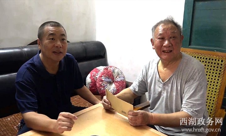 在曾德富老人家中,刘爱军感谢老人为西湖经济社会发展做出的重要贡献,叮嘱老人家保重身体,放松心情,尽情享受美好的退休生活。
