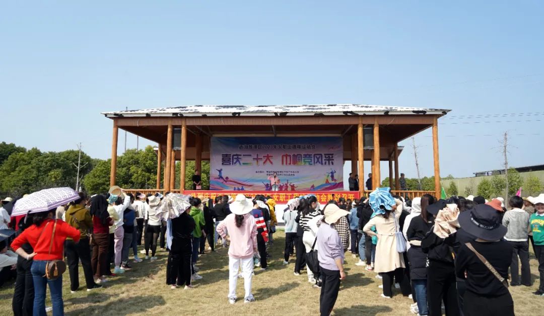 为庆祝第113个“三八”国际妇女节,引领全区广大女职工“听党话、跟党走”,激发干事创业的热情、丰富业余文化生活,营造团结向上、奋勇拼搏的工作氛围,3月6日,西湖管理区工会、妇联联合举办“喜庆二十大 巾帼竞风采”女职工趣味运动会。全区乡镇、区直各单位及企业积极响应,纷纷组建队伍,共10支队伍150余人参赛。