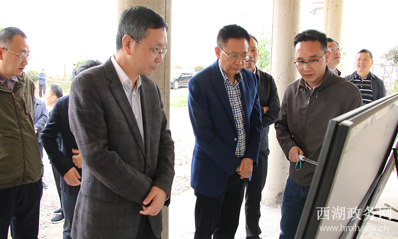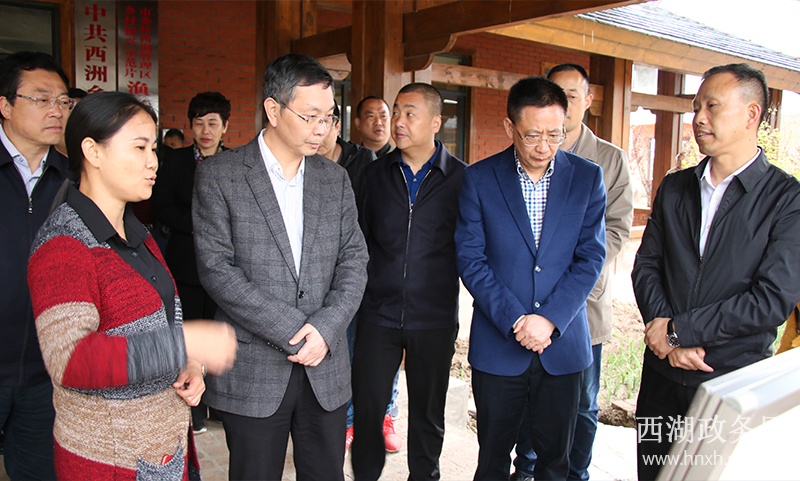 4月9日下午,市委常委、常务副市长陈恢清,副市长龚德汉带领市直相关部门负责人来到西湖,调研市乡村振兴示范片西湖片区建设发展情况,解决西湖发展面临的困难和问题,陈恢清指出,西湖片区要把三年的总盘子理清楚,科学统筹,以总体规划为蓝本,抓住8个示范点的建设,积极打造3个亮点,结合农村的实际,将西湖打造成全国一流、湖南领先的乡村振兴示范片区。