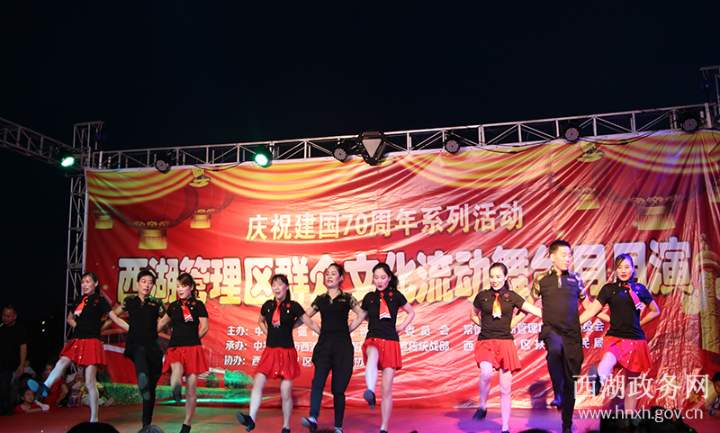演出中,不仅有西湖广场舞协会精心策划的高水准节目,还有各乡镇自编自导自演的舞蹈,充分展示了我区经济社会发展日新月异的变化和广大干部群众奋发有为、与时俱进的良好精神面貌。