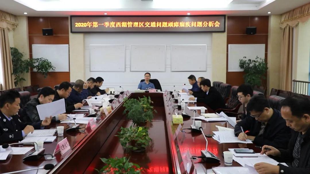 4月21日上午,西湖管理区召开工作推进会议,部署为期一年的交通问题顽瘴痼疾整治行动。区党委副书记、管委会副主任徐翔主持会议。
