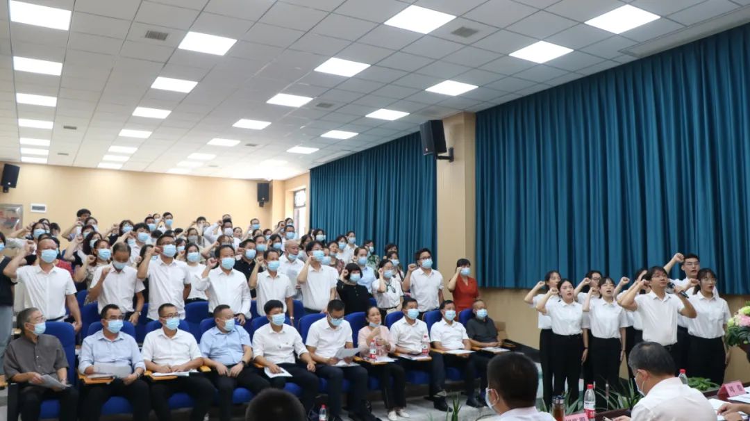 表彰大会上,区教育局局长周俊带领新进教师宣誓,与全体与会教师一起重温誓词。